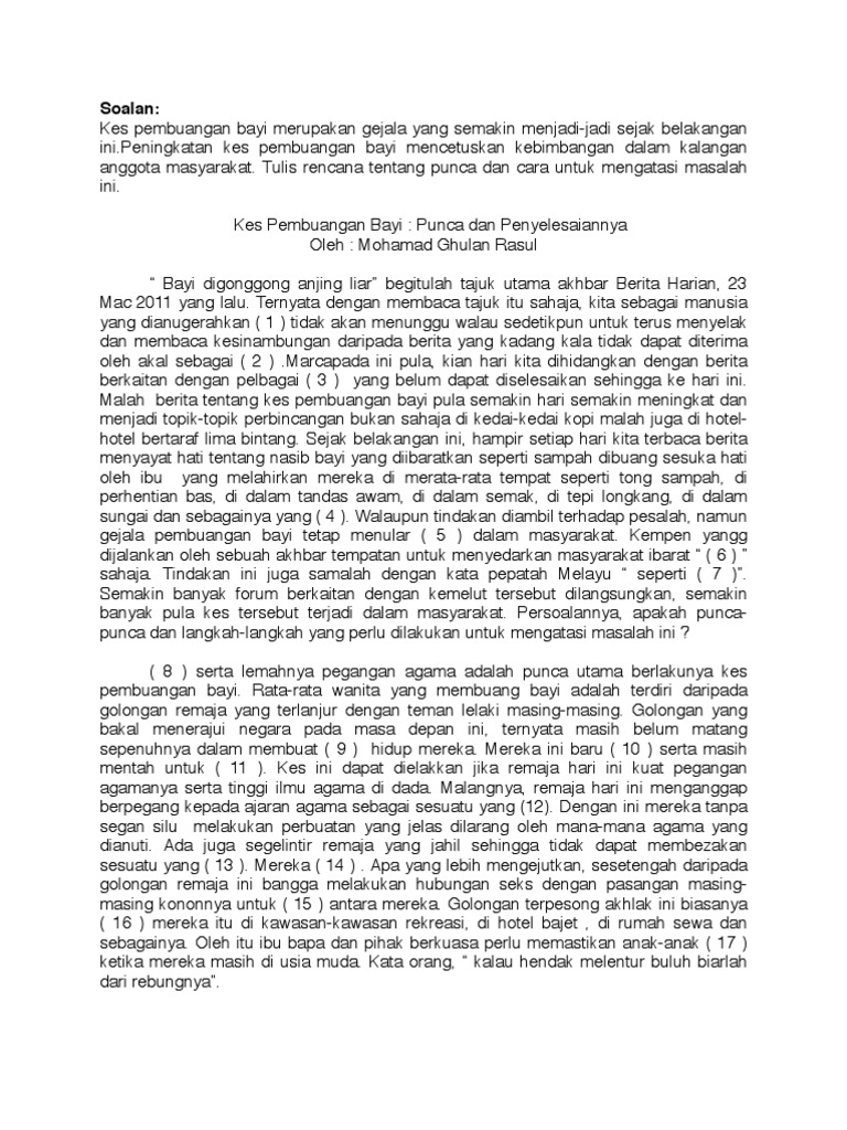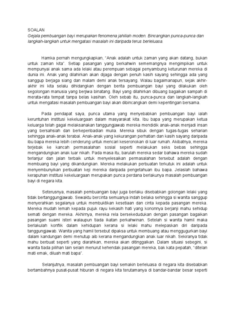 Anak cengeng dan gelisah. Academiaedu is a platform for academics to share research papers. Intihanya gejala pembuangan bayi yang serius tiada penghujung sekiranya tidak ada kesedaran dalam kalangan masyarakat sarwajagat untuk mengubah sikap kerana untuk menangani masalah pembuangan bayi ini bukan hanya menjadi tanggunggjawab ibu bapa sahaja tetapi memerlukan kerjasama semua pihak.